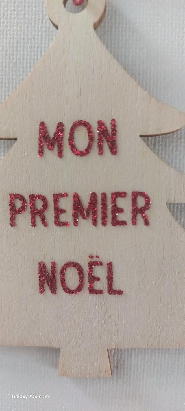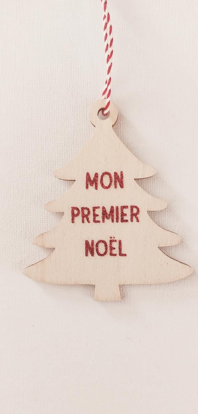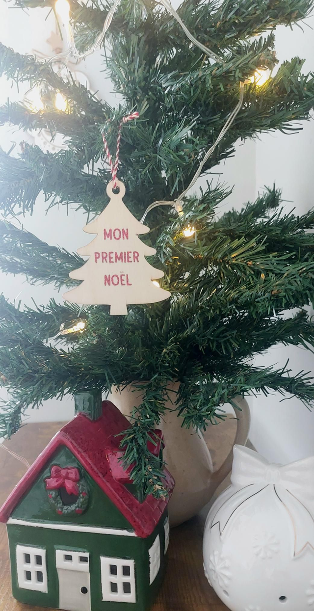 Petite suspension de Noël personnalisée pour un premier Noël en forme de sapin.